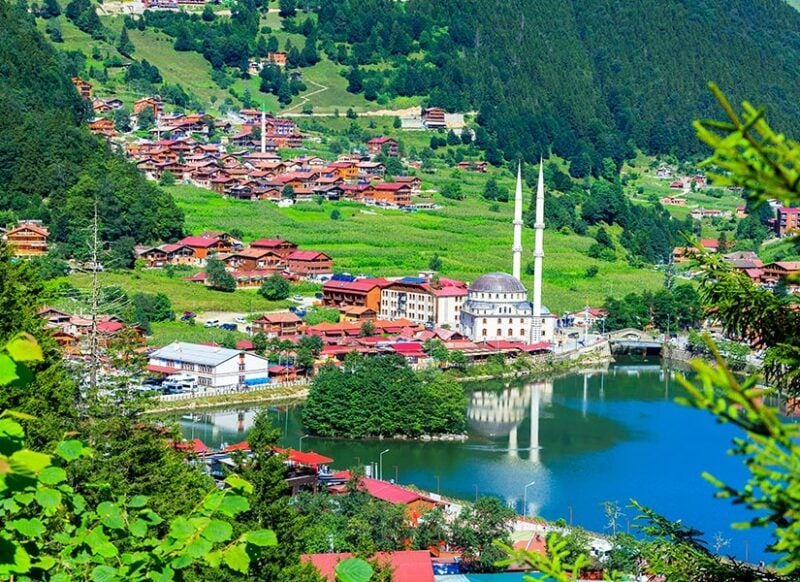 Trabzon’un en turistik yerlerinden olan Uzungöl, Çaykara’ya 19 km uzaklıkta bulunuyor. İlk yerleşimin 1586 yılında Rumlar tarafından yapıldığı bölgede, 1650’den sonra kalıcı ilk yerleşim başlamış. Yağmur ormanlarının birleştiği yerde bulunan Uzungöl, bol yağış ve kısmi ılıman iklimi sayesinde yılın büyük bir bölümünde yeşil kalıyor. 60’ın üzerinde endemik bitki türünün yanı sıra, 250 adet kuş türünün de yaşam alanı olan bölge, Doğal Sit Alanı statüsüne sahip. Uzungöl manzarasının keyfini çıkarmak için bölgeyi tepeden gören mekânlarda, güzel bir kuymaklı kahvaltı yapmalısın. Manzarayı izlemek için seyir terası seçeneği de var. Çevrede yapacağın doğa ile baş başa yürüyüşlerle göletleri gezebilirsin. Aynı zamanda, bölgede bulunan Dursun Ali Müzesi’ni gezerek, Uzungöl’ün tarihi hakkında detaylı bilgi edinilebilir. |