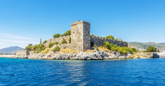 Bodrum Kalesi, 1406-1522 yılları arasında inşa edilmiş olan, Bodrum’un savunmasında önemli görevler üstlenmiş bir yapıdır. Kale, iki liman arasında yapılmıştır. Kare plana sahip olan Bodrum Kalesi, 180×185 metre ebatlarındadır. Kalenin en yüksek noktası olarak kabul edilen Fransız Kulesi ise 47,5 metre yükseliğe sahiptir. |